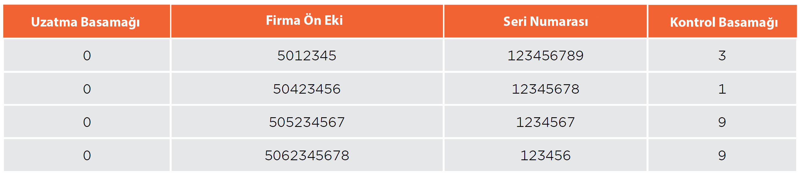 Uzatma Basamağı (Extension Digit): SSCC’yi oluşturan firmanın iç gereksinimlerine göre verilir. Genellikle taşıma biriminin tipini (konteyner, palet, varil, kasa vb) tanımlamak için kullanılır. 1’den 9’a kadar herhangi bir basamak olabilir.